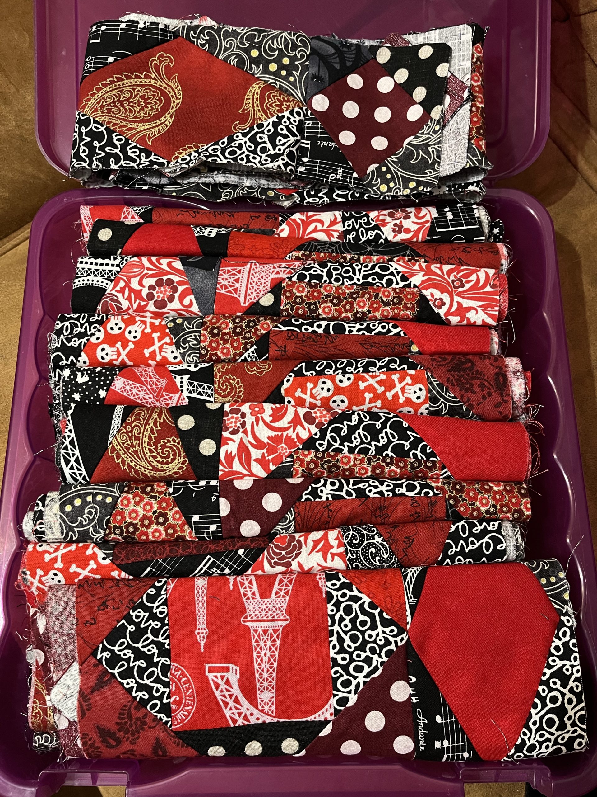 I have about twenty more blocks to go and then I lay it out fully to ensure not too many fabrics are next to themselves. Then it’s sewing into rows and the rows into a top!